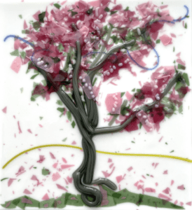 In this class, students will learn the basics of fused glass to create their own spring cherry blossom panel. New England may not be known for its early Spring, but this class will bring the joy of the season’s new colors in a forever fused glass piece. Verne will begin with a brief lesson on the elements used in fused glass as an art form, then students will use professional tools provided by Verne to create a colorful blooming scene. A favorite place, a photo, and/or just color and line will inspire your art. The students’ panels will be fired in a kiln off-site after the class, and will be returned to the gallery for pickup when complete.