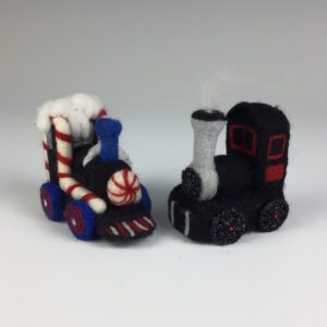 Learn the art of needle felting and create your own felted Christmas Train in this fun one-day workshop. Get a jump start on Christmas. This is a fun project where you will make different shapes and put them together to build your train. These can be used as tree ornaments, wreath decoration, or shelf decoration, and great for gifting! This is a really good beginner project and fun for experienced as well.