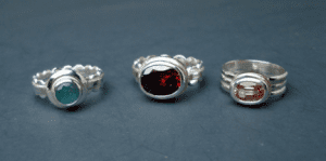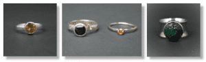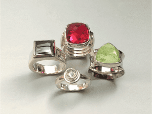 Ready to set sparkly faceted gemstones into rings? In this one day workshop, students will take round faceted stones, solder on silver tube bezels to silver rings, and then set the stones. For oval shapes and other odd shaped faceted stones, we will make a step bezel from silver, solder the bezel to ring and set stones. Students can make single stone rings or multiple stones rings. Students may bring gemstones or silver they have to use, but all materials will be provided. Estimated materials cost of silver and gemstones is $30 to $90.