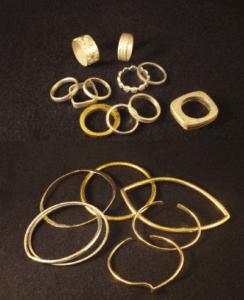 In this one day workshop, students will make bangles, cuff bracelets, and rings. Students will solder together simple wire rings and bangles, which will then be hammered for texture and embellished with wire-working. The cuff bracelets will be made from sheet metal that is textured and shaped into a C-shape bracelet. You will leave with new rings and bangles that you’ve made for yourself and make for great gifts! The instructor will supply brass, bronze, and copper wire as well as sheet metal and a limited amount of silver wire. The estimated cost of materials will be from $40 to $90 depending on how much material is used.